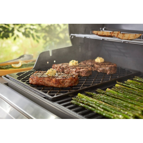 Dosáhněte dokonalého "steakového" výsledku jako v nejlepších světových restauracích. Litinový rošt Weber Sear Grate je určen pro grily Genesis II se 4 nebo 6 hořáky. Tento masivní rošt z porcelánem smaltované litiny se vkládá namísto jednoho roštu a je navržen tak, aby bleskově absorboval extrémní žár a předal ho přímo masu.