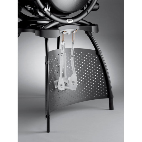 Elegantní krycí zástěna: Přední textilní panel s logem Weber vkusně zakrývá plynovou kartuši nebo lahev uloženou pod grilem.